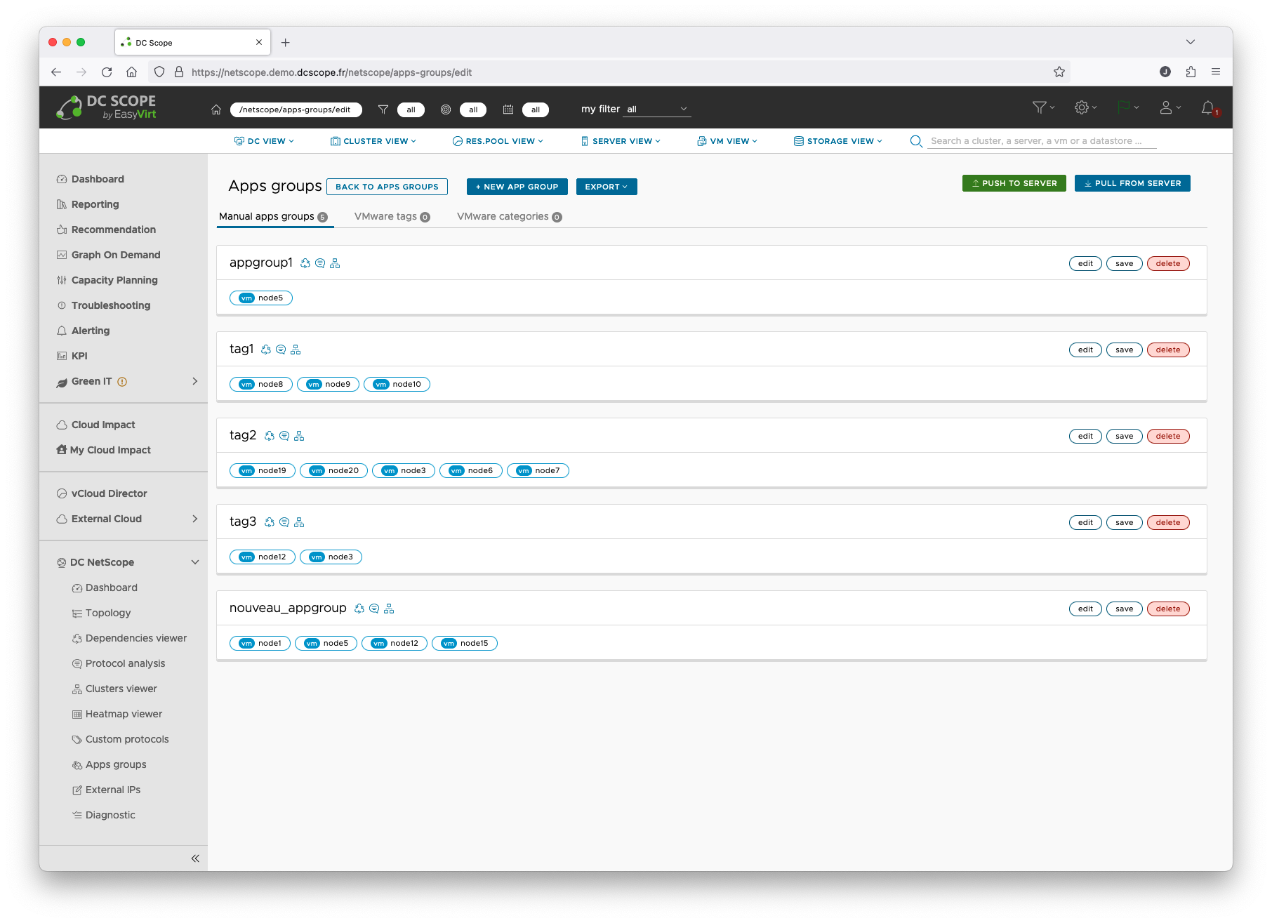 Once you have finished making changes, click the Push to server button to send your changes to DC Netscope: