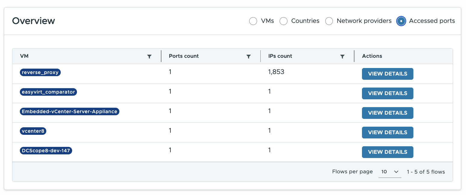 It shows the virtual machines that may have ports exposed to the outside. We provide two information :