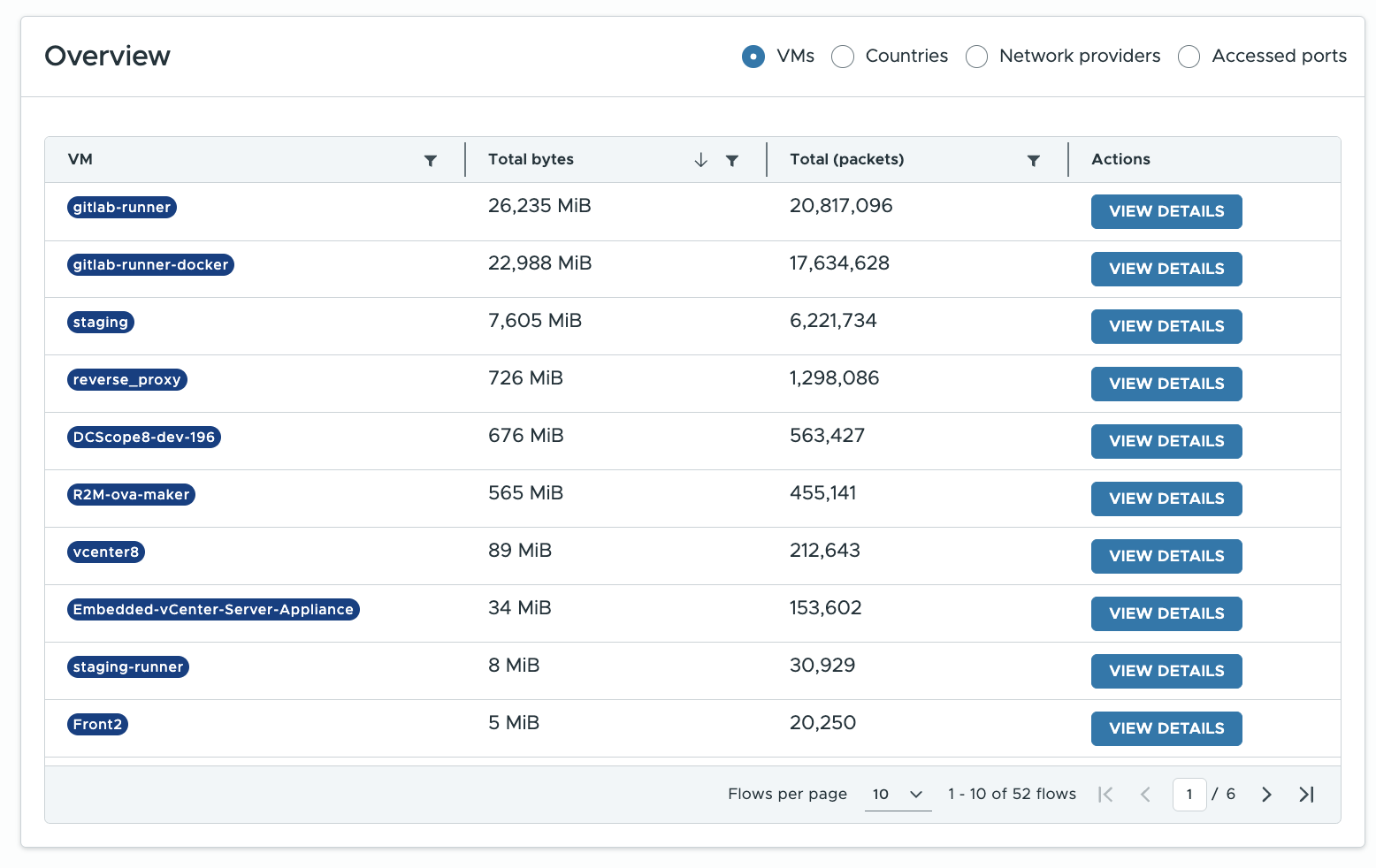 It shows the virtual machines that have communication with outside IPs, first showing those who have the highest traffic.